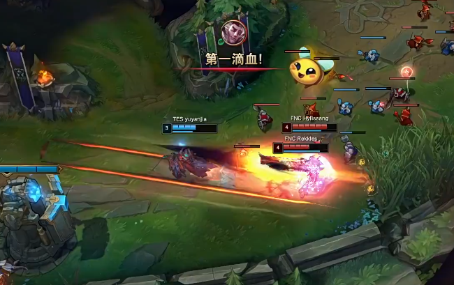 双方进入第二场比赛,在第二场比赛中,TES拿出了一套偏发育的阵容。而FNC则是拿出了一套团战能力非常不俗的阵容。不过,让人没想到的是,在第一局中有着非常出色发挥的FNC辅助选手Hylissang在这一局中表现依旧亮眼,直接是凭借着布隆再一次帮助双人路打出优势,同时也是再次成功压制住了TES的双人路。