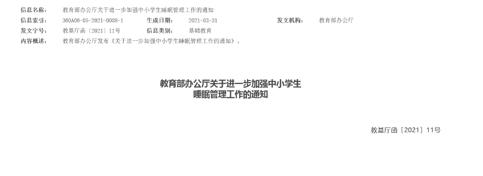 为保证中小学生享有充足睡眠时间,促进学生身心健康发展,现就进一步加强中小学生睡眠管理工作通知如下。